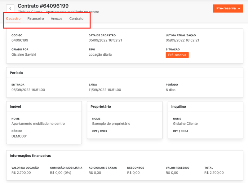 O tipo pré-reserva era indicado quando o cliente ainda não confirmou a locação, e você gostaria de deixar o imóvel reservado. E o tipo locação normal, era utilizada quando a locação já estava confirmada.