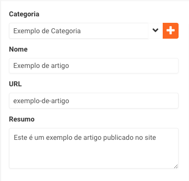 Em seguida preencha o nome do artigo / dica. A URL é gerada automaticamente, utilizando o nome do artigo.