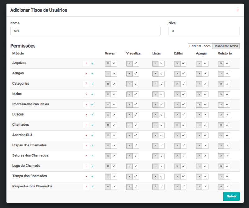 - Relatório - Tem acesso aos relatórios gerenciais do módulo
