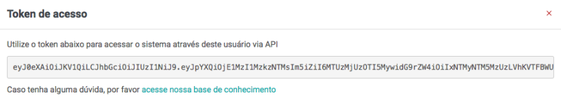 Certifique-se de copiar todo o código. Guarde este token com segurança pois é através dele que você terá acesso à API.