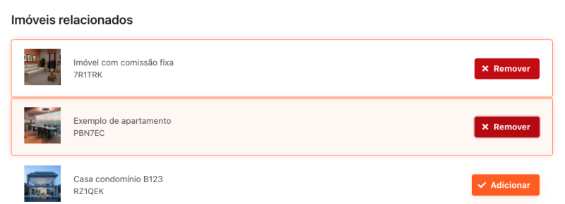 Para remover um imóvel da lista, clique em Remover, dessa forma ele não será exportado ao portal.