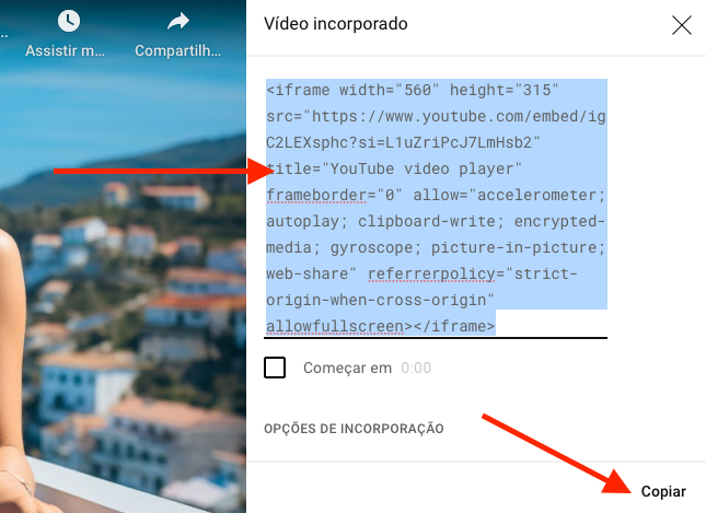 Como adicionar o código para incorporar o vídeo do YouTube no site do CIM IMOB