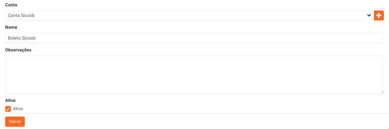 Seguindo o formulário de cadastro, selecione a conta que irá receber os valores da cobrança e cadastre um nome. Para finalizar, clique em Salvar.