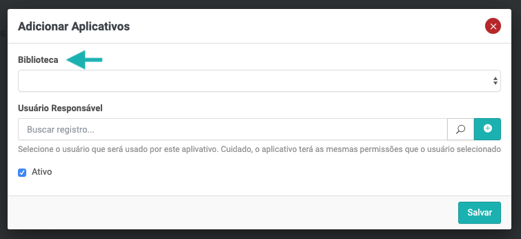 - Nome: Nome do aplicativo. Por padrão o sistema preenche com o nome da biblioteca selecionada;