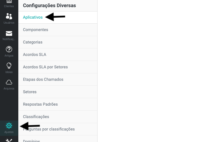 Para configurar o Active Directory, após fazer o login no sistema, acesse o módulo Ajustes e clique no item Aplicativos, conforme a imagem abaixo: