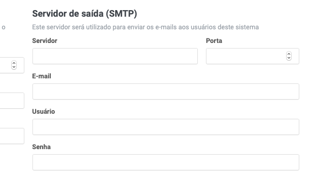 Os seguintes campos de configuração do e-mail devem ser preenchidos: