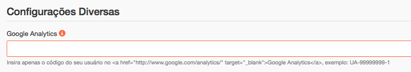 3. No campo "Google Analytics", informe o seu código;