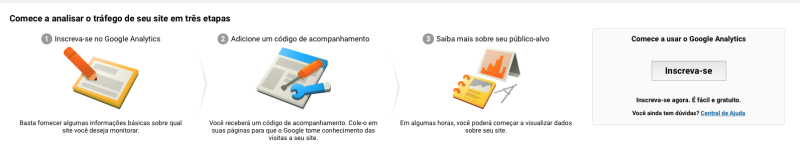 Se for o seu primeiro acesso ao Google Analytics a seguinte página será exibida: