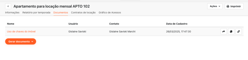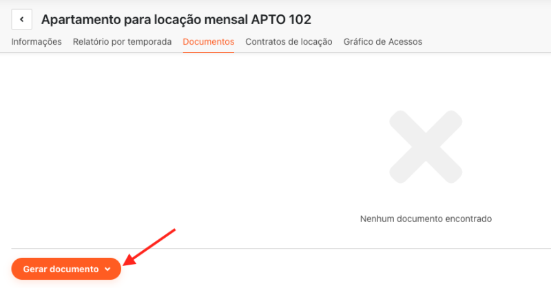 Acesse o imóvel desejado e clique na aba Documentos, em seguida clique em Gerar documento.