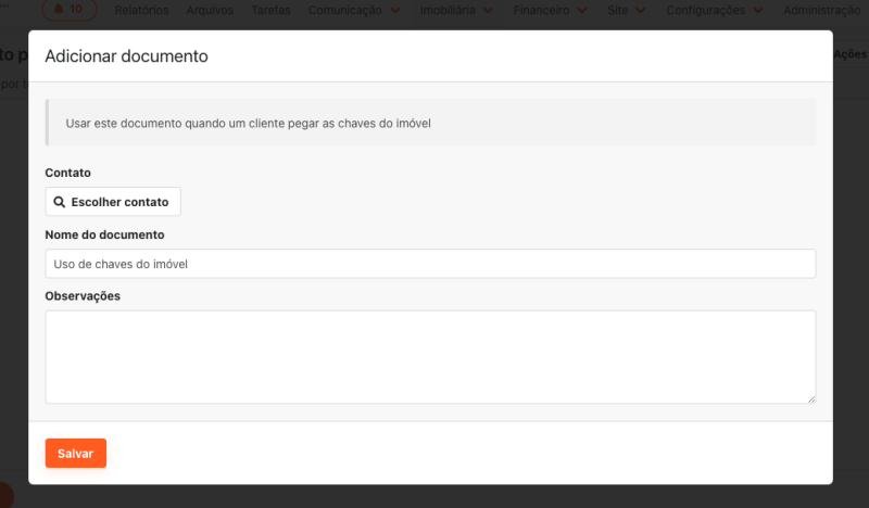 Ao clicar em Salvar, o documento ficará salvo no imóvel e poderá ser consultado sempre que necessário ou compartilhado com o contato.