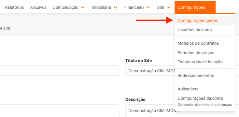 Ou acesse o menu de Configurações -> Configurações Gerais, conforme a imagem abaixo: