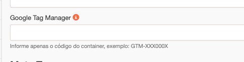 Nesse campo você deve informar apenas o código do Tag Manager.