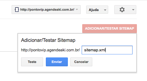 Clique no botão "Enviar". Pronto o arquixo XML com o seu sitemap foi enviado com sucesso.