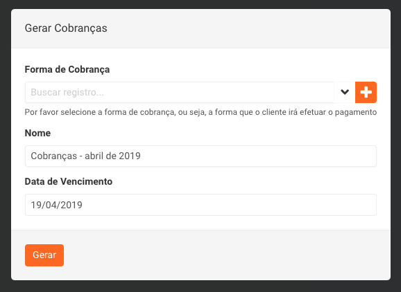 Para que a cobrança seja gerada corretamente, será necessário configurar as formas de cobrança. Para aprender como configurar as formas de cobrança veja o artigo Como configurar as contas e formas de cobrança.