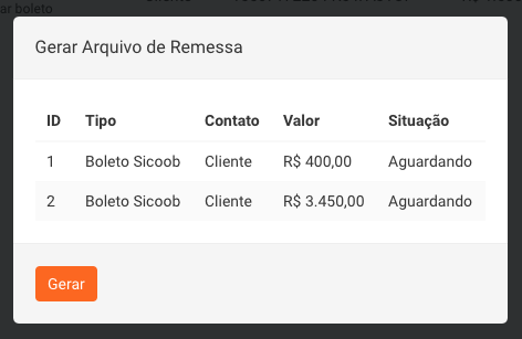 Será necessário enviar o arquivo de remessa para registro no banco. Para aprender como importar o arquivo de remessa no sistema do banco, por favor entre em contato com o suporte do banco utilizado.
