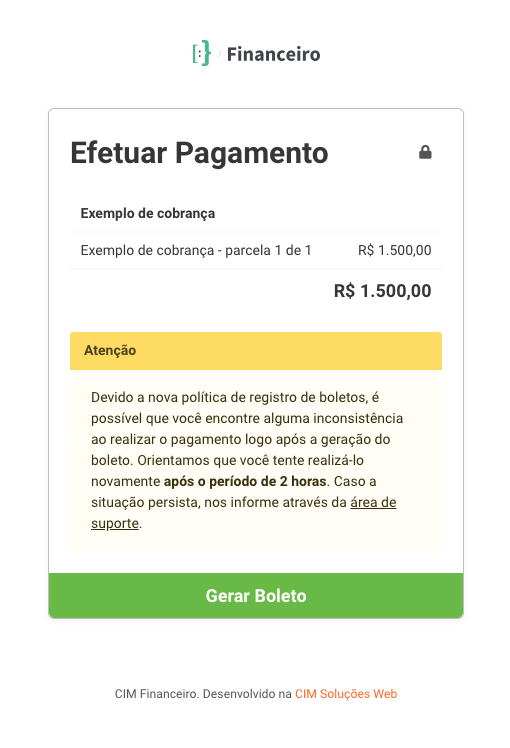 O cliente irá receber por e-mail o link para acessar a cobrança e gerar o boleto: