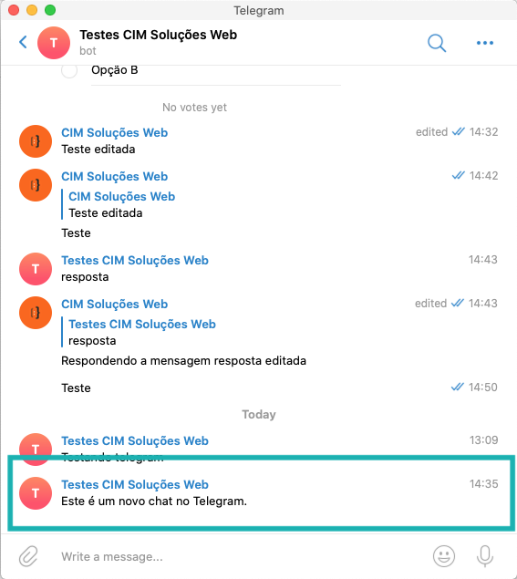 Desta forma, os chamados serão unidos e o cliente continua recebendo as mensagens no Telegram.