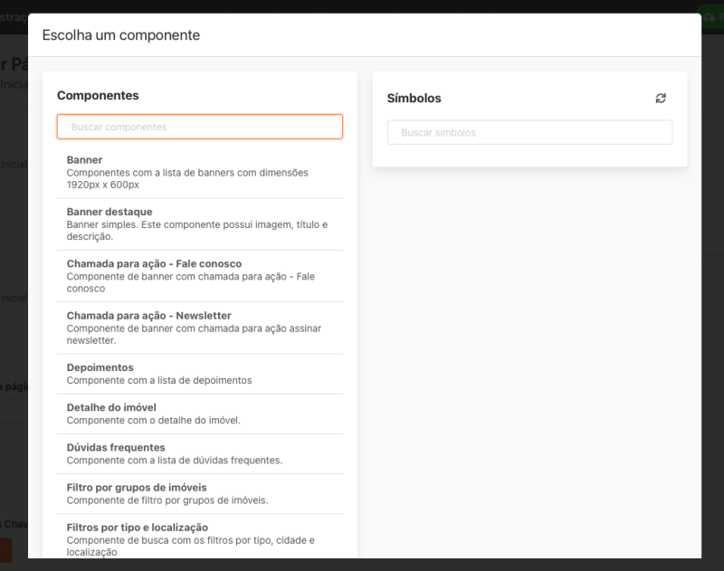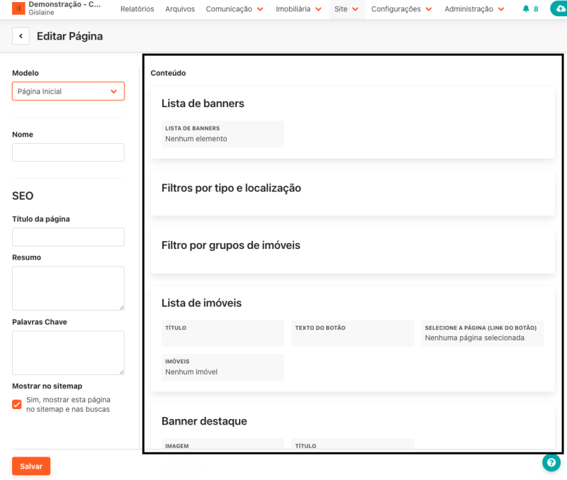 O editor de páginas disponível no sistema para imobiliária Cim Imob 3.0 e permite criar e personalizar as páginas do seu site.