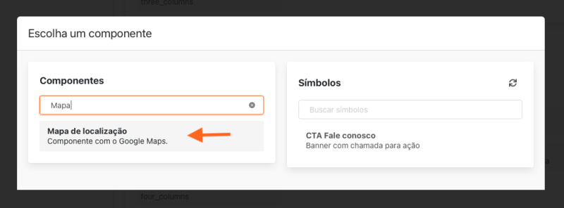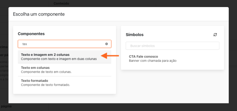 Para adicionar o componente na página, clique sobre o componente desejado: