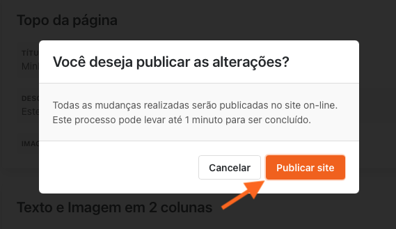 Atenção: Essa ação é irreversível, por isso publique o site após efetuar todos os ajustes necessários.