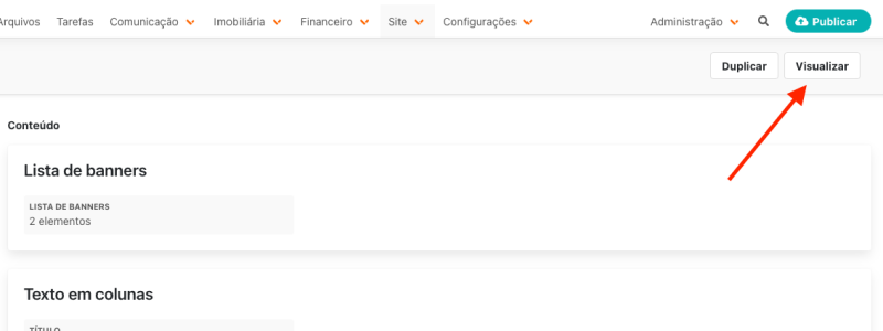 Caso você queira ver como a página está ficando, sem publicá-la no seu site, você pode clicar no botão de visualizar, no canto superior direito da tela.
