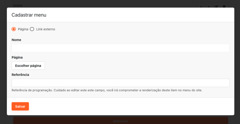 - Em seguida, informe o nome que será exibido no menu;