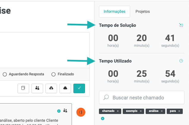 Outra ferramenta disponível no Fluxki é o controle de tempo do chamado. De acordo com o Acordo SLA cadastrado para o cliente, o sistema controla o tempo restante para solução do chamado. Além disso, o sistema guarda quanto tempo já foi utilizado para resolver o chamado.
