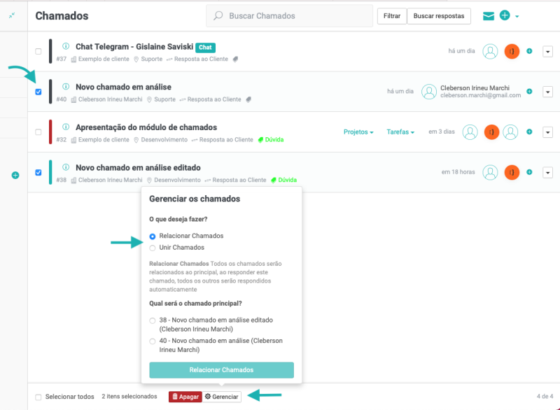 Como relacionar chamados