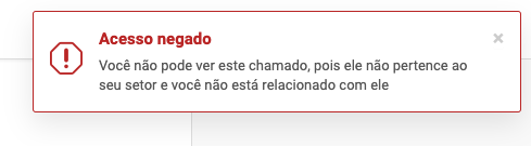 Caso o usuário tente acessar algum chamado que ele não esteja relacionado e pertence a outro setor, o sistema irá retornar a mensagem de acesso negado, conforme a imagem abaixo: