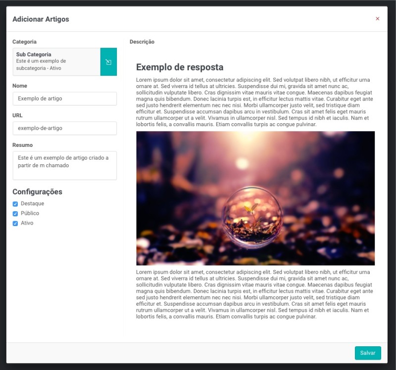 Para finalizar o cadastro do artigo, clique em Salvar.