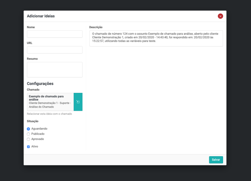 Para finalizar o cadastro da ideia, clique em Salvar.