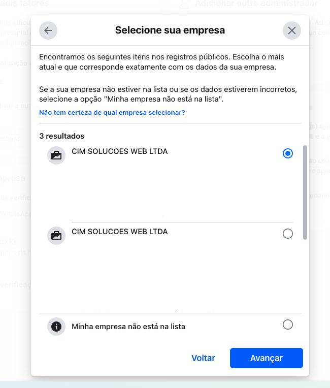 Caso fique alguma dúvida sobre o processo de verificação da empresa junto ao Facebook, entre em contato com o suporte.