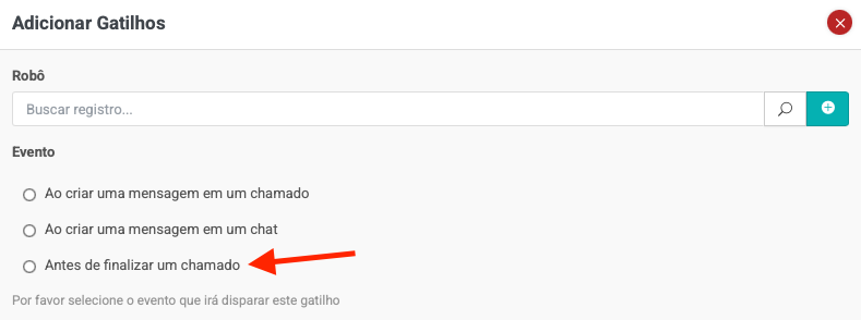 Este artigo descreve como configurar o webhook que é executado antes do chamado ser finalizado. O gatilho envia um POST HTTPS com payload JSON contendo informações do ticket, usuário e request_data.
