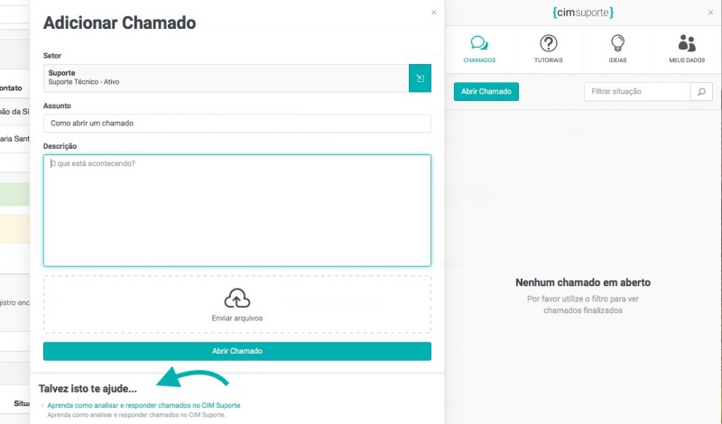 Os atendimentos ou chamados, poderão ser registrados no sistema através do e-mail, área do cliente, API e Telegram (entre em contato para mais informações).