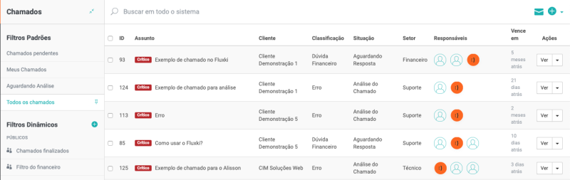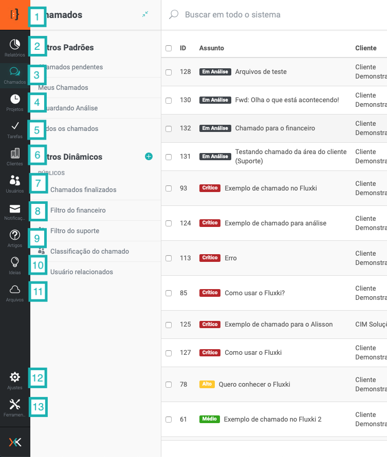 Todos os módulos do Fluxki possuem a mesma interface, facilitando assim o aprendizado e o uso do sistema.