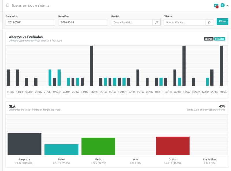 - Organização dos chamados por setor, etapa, classificação ou cliente;