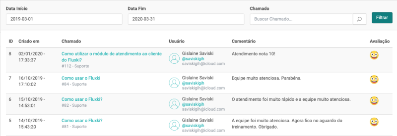 No relatório de avaliações, é possível acompanhar o feedback dos seus atendimentos e as avaliações: