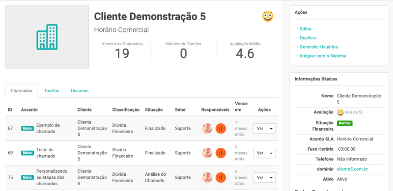 - Visualizar a quantidade de chamados e tarefas relacionadas ao cliente;