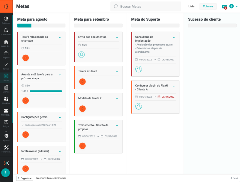 Na visualização em colunas serão exibidas todas as tarefas relacionadas com a meta.