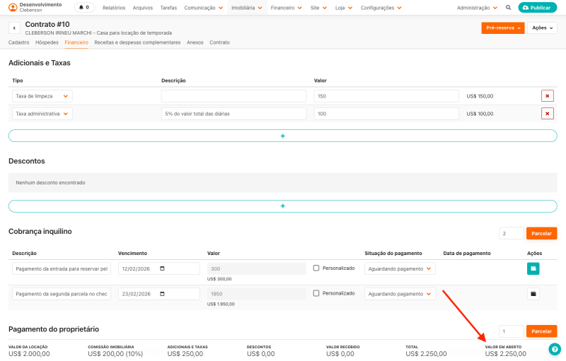 Corrigimos o bug que mostrava 0 quando não havia pagamentos registrados. Agora, o valor em aberto é calculado e exibido corretamente.