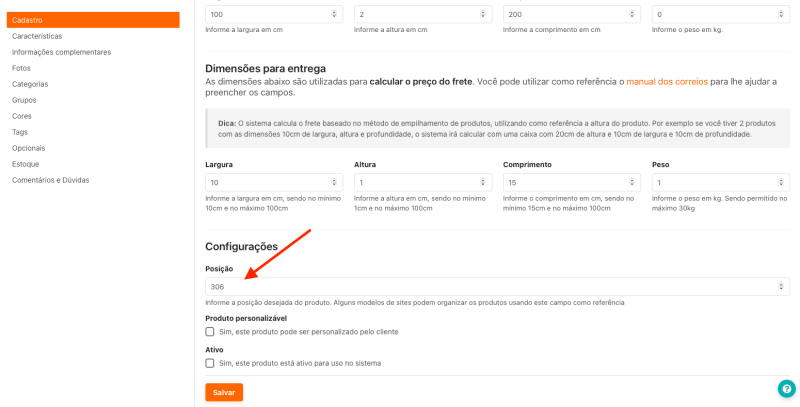 Novidade: Cadastro de posição do produto