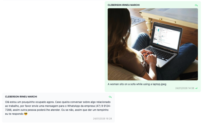 Imagens em mensagens agora se adaptam melhor ao layout, evitando cortes e excesso de largura em diferentes tamanhos de tela.