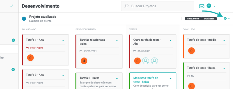 Novas tarefas podem ser adicionadas ao projeto, após o seu cadastro ou quando a equipe já está trabalhando nele.