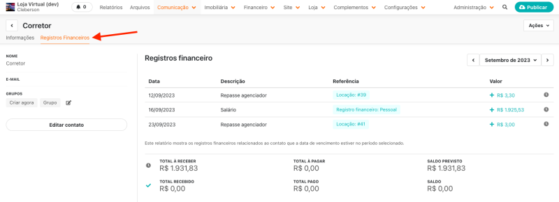 Agora os usuários de corretores poderão acessar o seu relatório financeiro, para fazer isto basta clicar no botão “Ver relatório financeiro completo”, na página inicial do sistema.