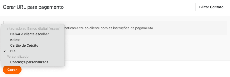 Em seguida escolha a opção cobrança personalizada, conforme a imagem abaixo: