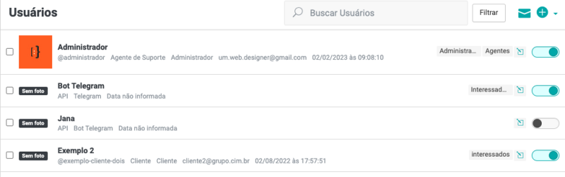 A aparência da lista de usuários foi melhorada, com ajustes visuais e possibilidade de visualizar os grupos que o usuário está relacionado.