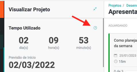 Na visualização do projeto, clique no ícone de tempo ao lado de Tempo utilizado: