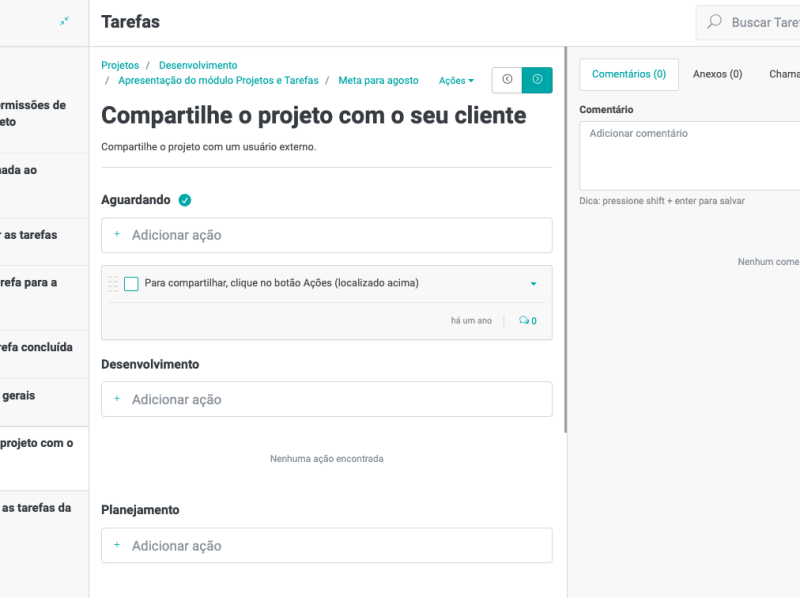 O atalho pode ser acessado diretamente na tarefa, seja na visualização do projeto, na agenda do usuário e também na visualização da meta.
