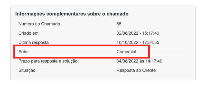 Adicionado o setor do chamado, no e-mail de notificação de chamados.