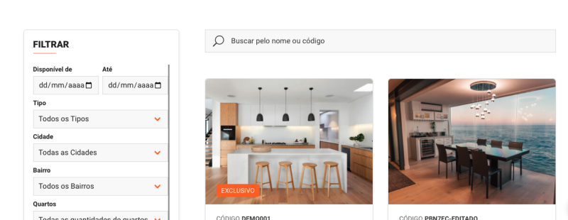 O filtro foi adicionado na página da "Lista de imóveis".